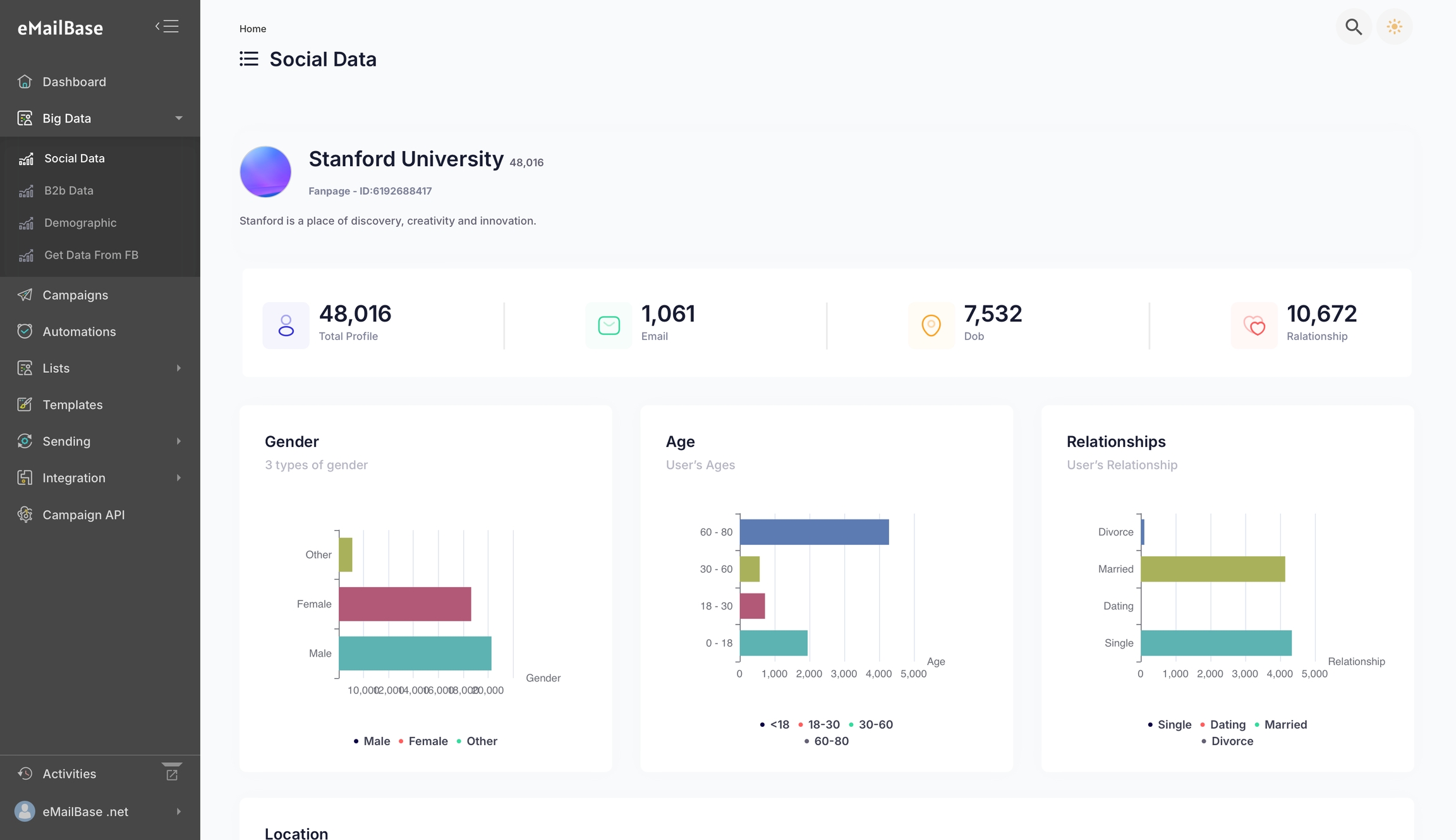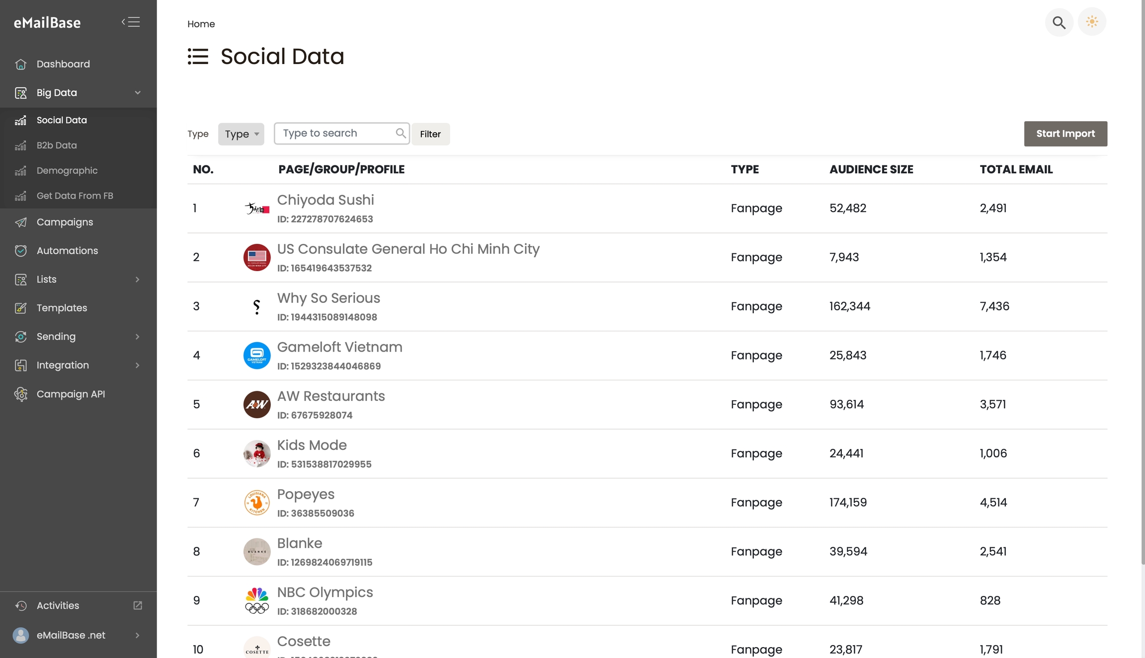 Vào phần Big Data trên bảng điều khiển của eMailBase.