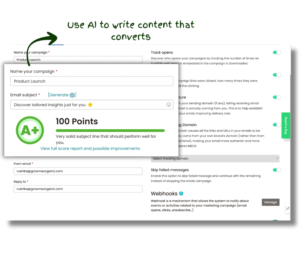 AI Đề Xuất Các Tùy Chọn Tiêu Đề: AI sẽ tạo ra nhiều tùy chọn tiêu đề dựa trên đầu vào của bạn, cho phép bạn chọn cái phù hợp nhất với chiến dịch của mình.